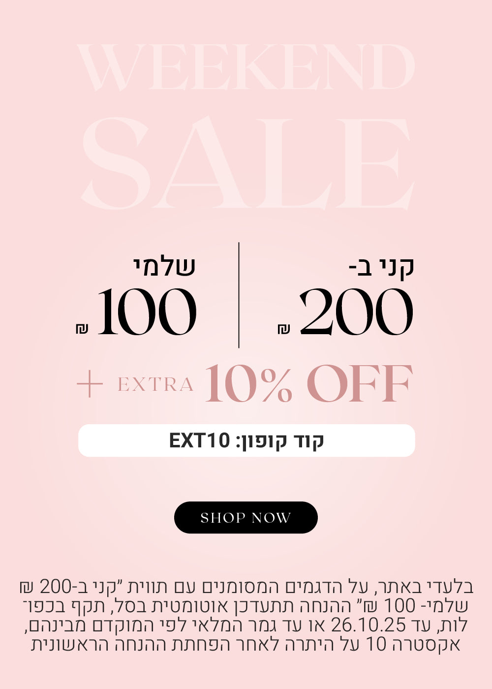 *מסירת הפרטים האישיים נעשית מתוך הסכמה ורצון חופשי, מבלי שחלה עליך כל חובה חוקית למסורם. הפרטים האישיים ישמרו במאגרי המידע של החברה והקבוצה ולמטרות המפורטות מדיניות פרטיות של החברה והקבוצה.
